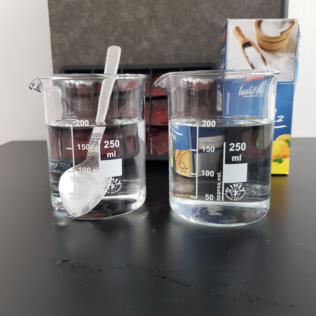 The first part of the series describes the difference between salt water and fresh water (spoiler: it’s the salt that makes the difference). But what happens if you put an ice cube into a glass of fresh water and another one into a glass of salt water? Right. They melt. But which one melts faster? And what happens with the melt water from the ice cube?