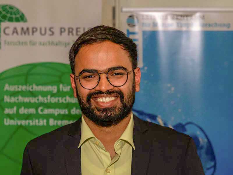 Rohit Samant erhält die Auszeichnung für seine Masterarbeit zur Zukunft des Kaspischen Meeres, die er im Studiengang Marine Geosciences angefertigt hat. Der CAMPUS PREIS zeichnet herausragende, auf dem Campus der Universität Bremen erstellte Abschlussarbeiten aus, die sich thematisch der nachhaltigen Nutzung von Ressourcen, dem Schutz der Umwelt, des Klimas und der Meere widmen.